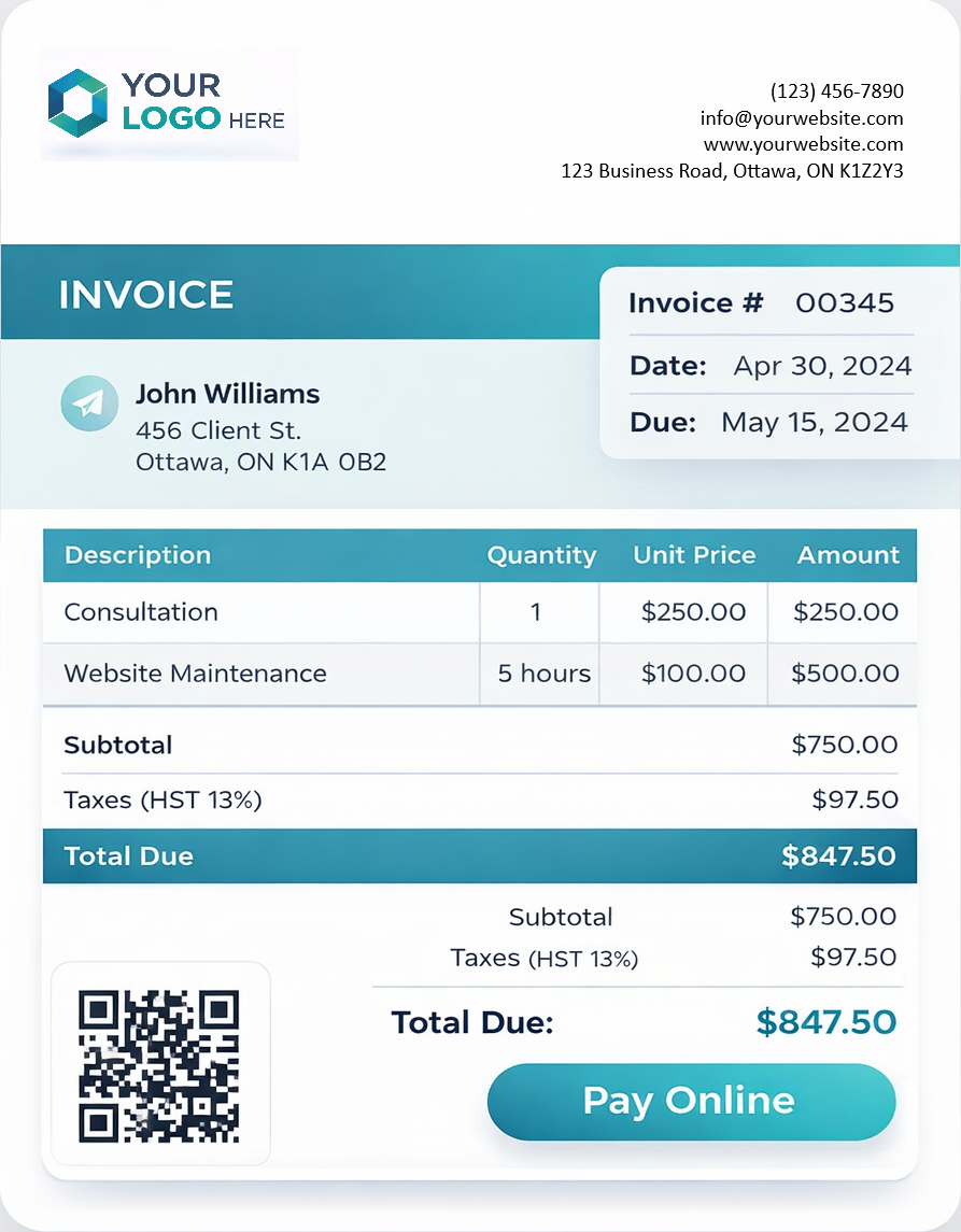 Absolutely. You can add your logo, business details, set payment terms, include notes, and tailor invoices to match how you operate.
